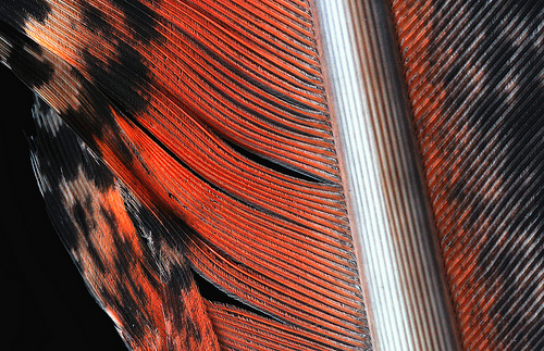 When you look closely at feathers, such as those included here, and consider that the colours differ based on age and gender of the bird, and that each of these feathers is replaced at least once per year during moult, you begin to appreciate what a well-orchestrated micro-environment this must be.