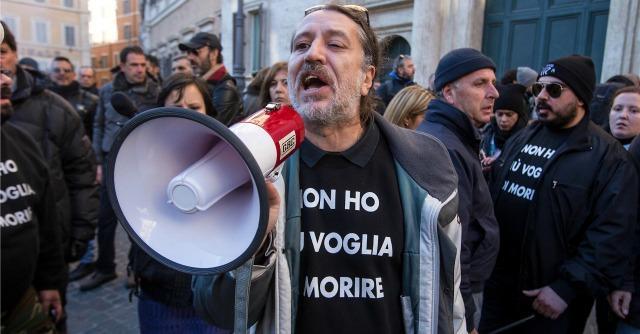 Davide Vannoni in one of his public appearances together with other supporters of his method. The t-shirt says: I don’t want to die. Image source: : Il fatto quotidiano
